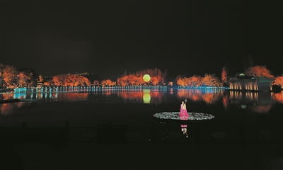 既然是今年的首演,演出内容也有相应的调整。一开场,就有一位杭州人熟悉的“老市长”现身,念着“水光潋滟晴方好,山色空蒙雨亦奇”的苏东坡踏水而出,进行了一番古今对话之后,他说出点题之语:最忆是杭州。这时,岸上12位美丽的古装美人手拿捧花依次亮相,她们以花为道具,代表不同季节的花神,春桃花,夏莲花,秋桂花,冬梅花………担得起“风姿绰约踏歌而行”八个字。据了解,今年的“最忆是杭州”依旧维持着一天一场的排期,每天19:40开演。从昨晚的观演体验来看风还是有点大,因为冷空气的到来,这两天想去看的话,还是要多准备一点厚外套和围巾等衣物御寒。