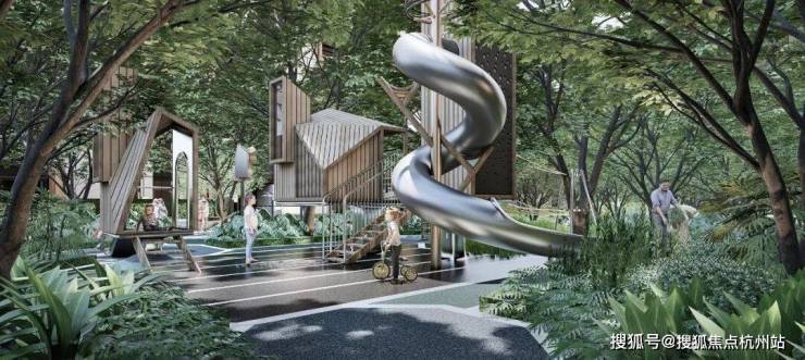 第三场景:以自然为主题的飞鸟生活场景作为终点,形成较为开敞、自然的游戏花园。