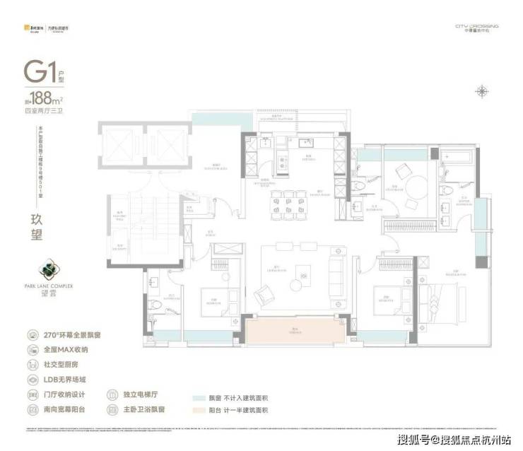 而在户型设计方面,建面约188㎡的4房产品,更是做了全面的超配。