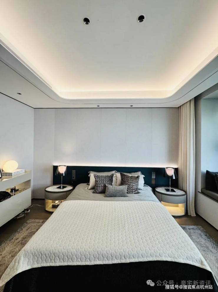 现代典雅立面,灰色搭配香槟金的色调,彰显不同建筑审美,外立面为品质铝板+玻璃幕墙,局部干挂石材和保温一体板,通过数控切割、精度弯弧、手工焊接、打磨抛光、七重清洁、烘干喷漆、高温定型等过十余步精细工艺,是高端住宅中品质最高的立面铝材。