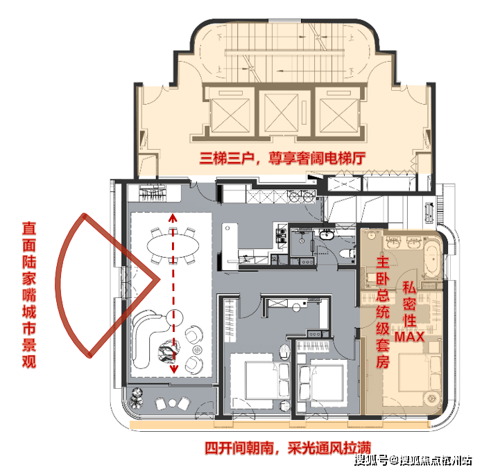 陆家嘴太古源 源邸本批次加推建面约240㎡、388㎡二种户型,每一户型均基于1号楼与5号楼的绝佳观景位精心雕琢,力求将“融江”从愿景化为日常。