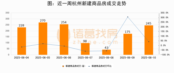 【杭州成交日报】06月10日新房成交245套、二手房185套;涨价房源33套