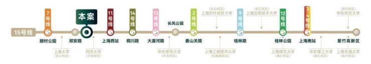 地铁15号线同时被誉为“轨交版南北高架”,沿线北起宝山南至闵行,途径静安寺、环球港等核心商圈。同时,地铁15号线也被誉为“科创黄金线”,线路南北串联全程途经9个高校(10个校区)、4座公园、3个国家级科创园区,2大高铁枢纽。