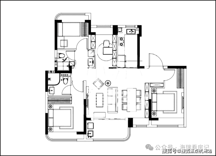 建面约116㎡3+1房2厅2卫,经典飞机式户型,三开间朝南,约5.6米横厅,U型厨房,南北直通(过程稿,仅供参考)!