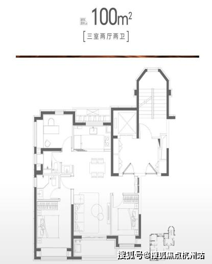(建面约100㎡户型示意图,以实际交付为准)