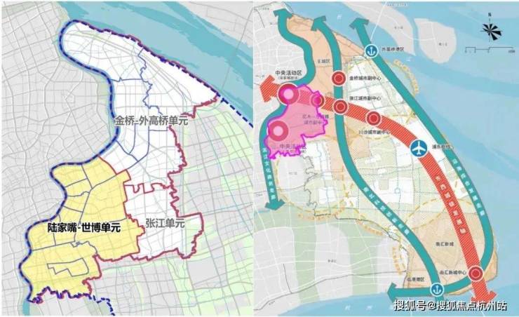 陆家嘴-世博单元包括陆家嘴和世博-前滩,这两块属于上海的中央活动区,还包括花木-龙阳路城市副中心,以及洋泾、北蔡、三林等热点地区。