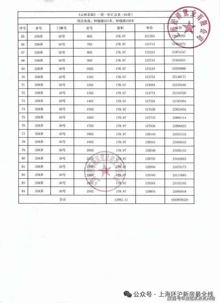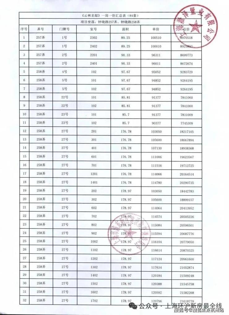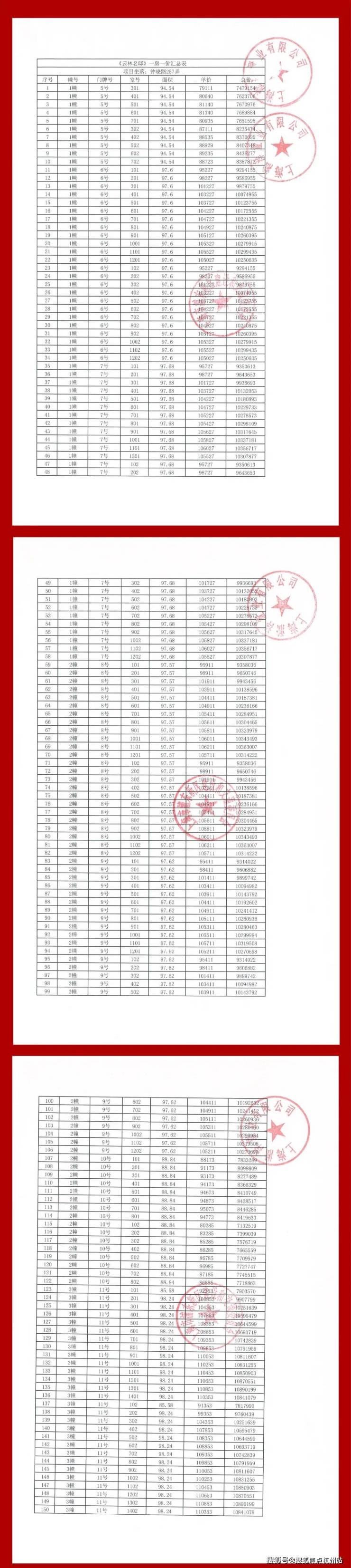 前期「一房一价表发布」