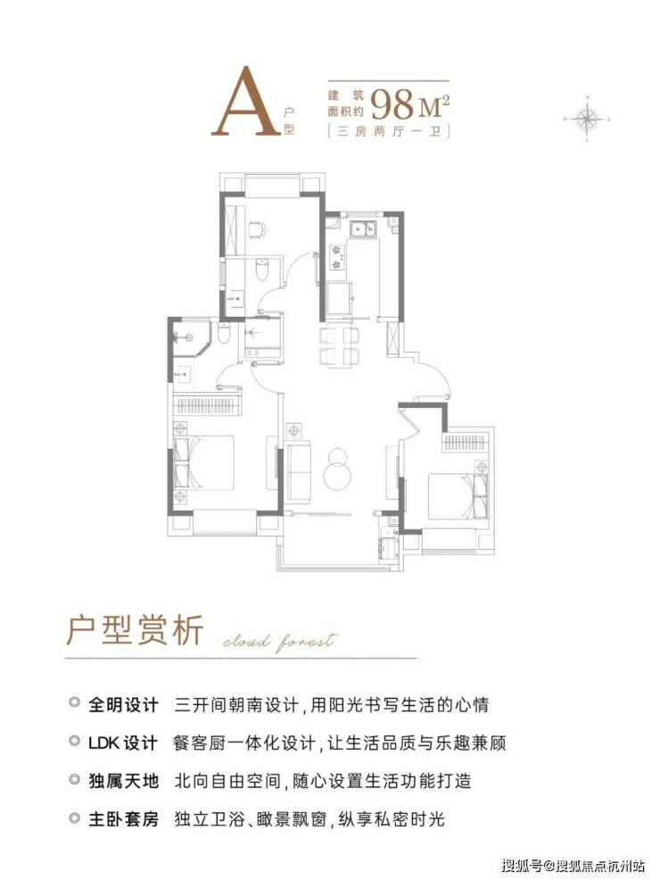 A户型建面约98㎡3房