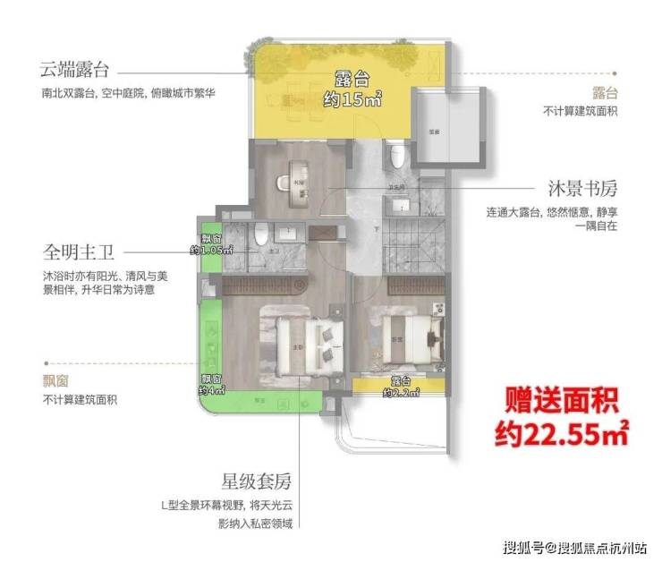 第一,这个户型有约9.8㎡的飘窗,约7.2㎡的阳台,整体的附赠高达约13.4㎡。这是目前上海外环沿线,是附赠率最高的一个小高层产品。