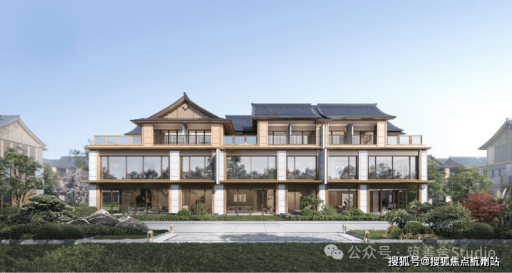建筑立面以现代材料演绎宋代美学,铝板一体板与金属漆一体板精心构筑,奢石点缀其间,匠心独运地融合现代技艺与宋式形制。飞檐楼阁与祥纹图样,于细节处尽显端方威仪与风雅逸韵。