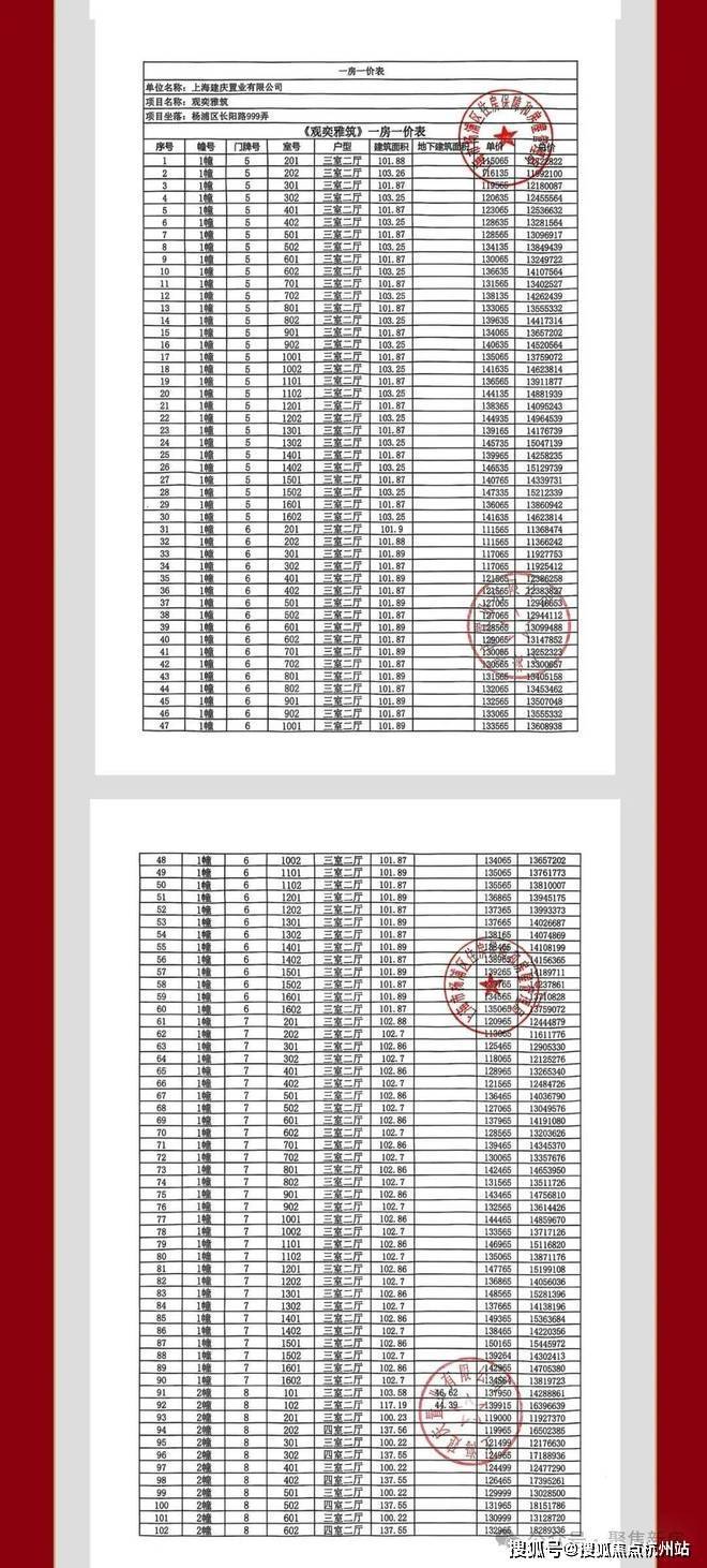 项目一房一价表▼