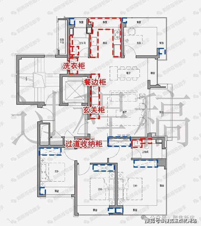 3、收纳升级up:红色线框部分为交付收纳柜,蓝色线框也是未来完全可以做灵活收纳的空间!细节打造上也是可圈可点!