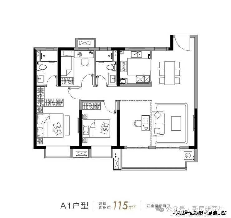 主力户型:户型涵盖2-4居室,覆盖刚需到改善需求,面积段跨度较大,包括72㎡、75㎡、77㎡、85㎡、90㎡、95㎡、115㎡、119㎡、123㎡等多种规格.