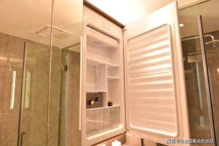 最后值得一提的是,项目还有很多个性化定制设计,包括防雾镜、美颜灯、电热毛巾架、岛台轨道插座(约93㎡户型)、预留美妆冰箱等。