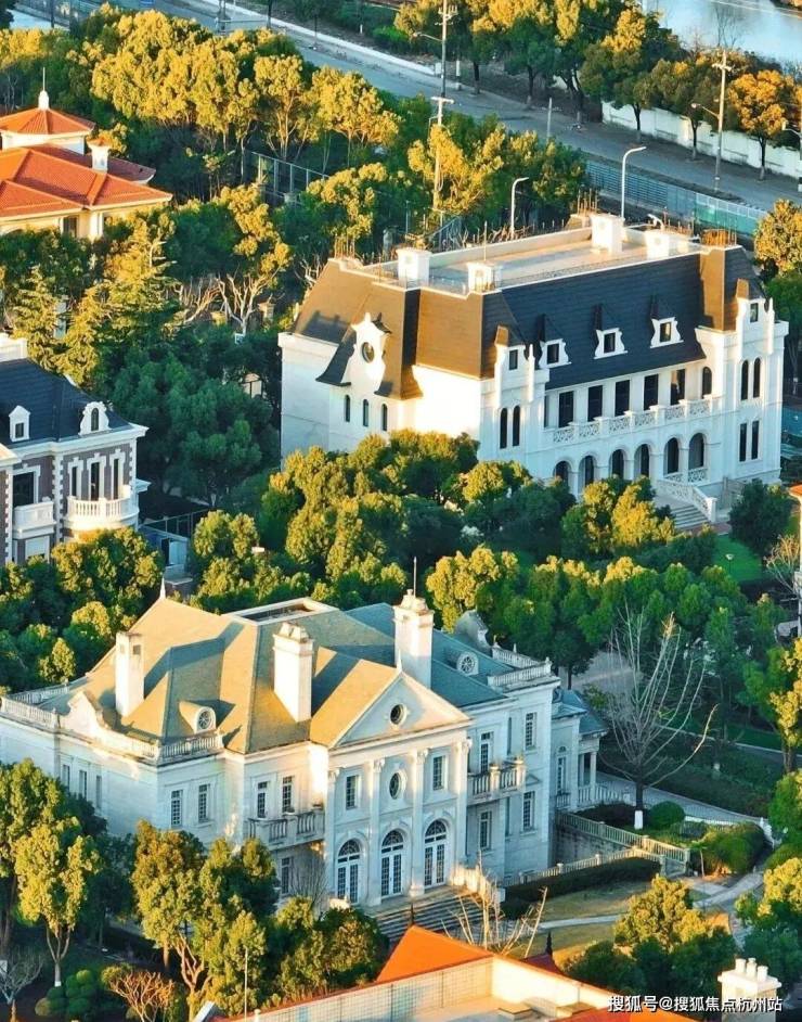 华洲君庭一共仅21套独栋别墅,每栋占地5亩,风格各异,建筑面积在1300~1400平方米之间,超过1000平方米的花园、游泳池、按摩池、室内电梯等都是标配,号称“沪上第一豪宅”。