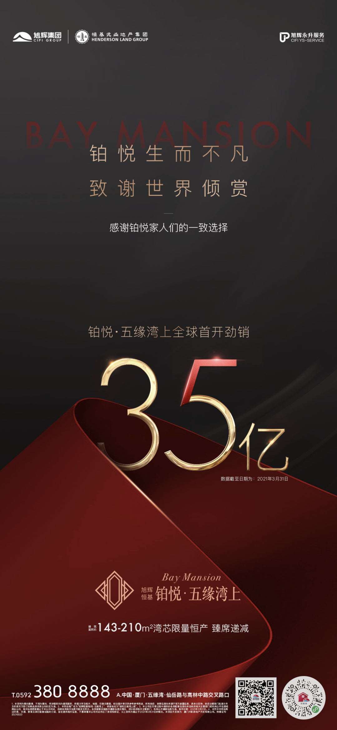 作为时代封面作品的铂悦·五缘湾上,从面世之初便已备受高净值人群争相追捧,首开大捷创35亿的佳绩,让其成为厦门高端市场又一大新亮点,也向全厦门呈现了项目口碑的非凡实力,与产品自身的巨大感召力!