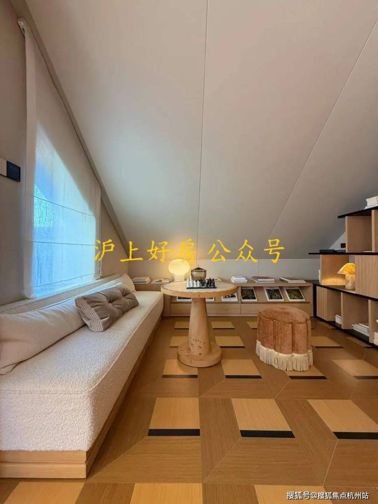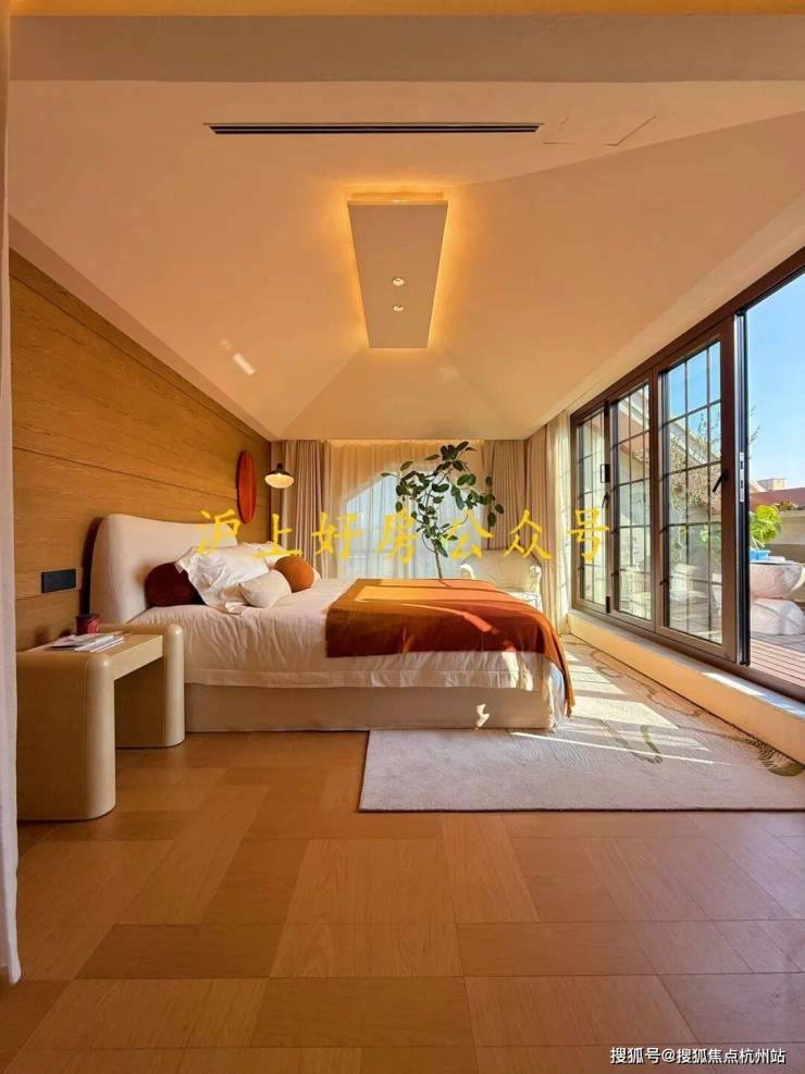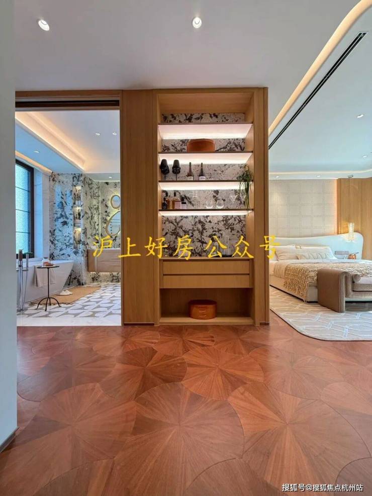 在今年上半年大家都在卷人字拼地板的基础上,外滩源著主卧地板升级为柳叶拼接,进一步做了升级:
