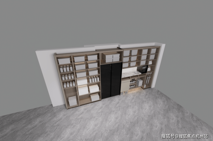 主卧和约99平户型一样,衣柜更大形成衣帽空间,还交付有半开放式、类似于酒店的迷你吧设计: