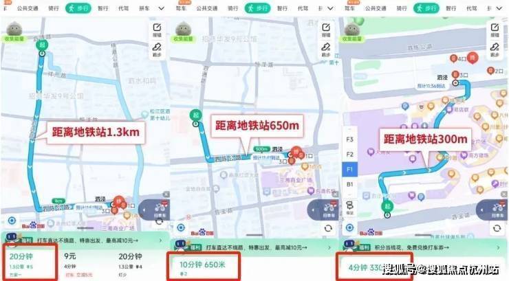 客户终究会用脚丈量之后才会买单,是不是地铁房要看步行能不能进站。 而直线距离300米,是步行进站的准线。