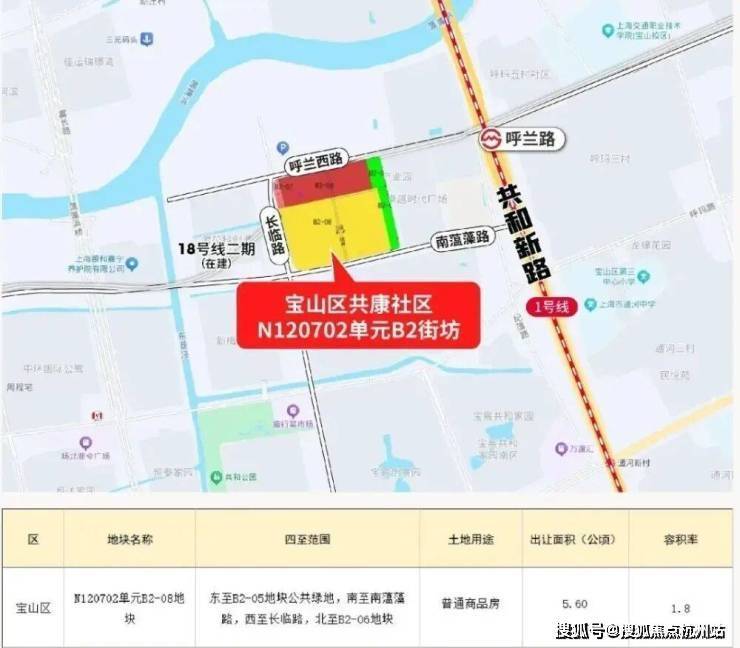 这宗编号为宝山区N120702单元B2-08的地块出让面积约5.6公顷,规划建筑面积超过10万平方米,容积率为1.8。这也是该板块时隔20年再次推出的市场化住宅用地。