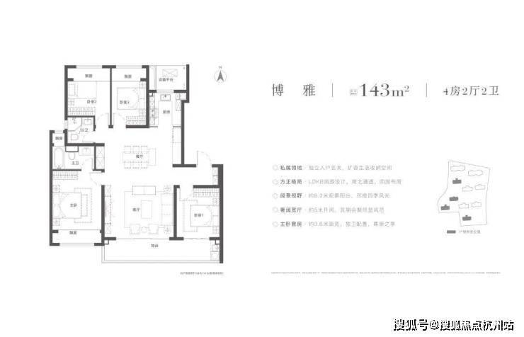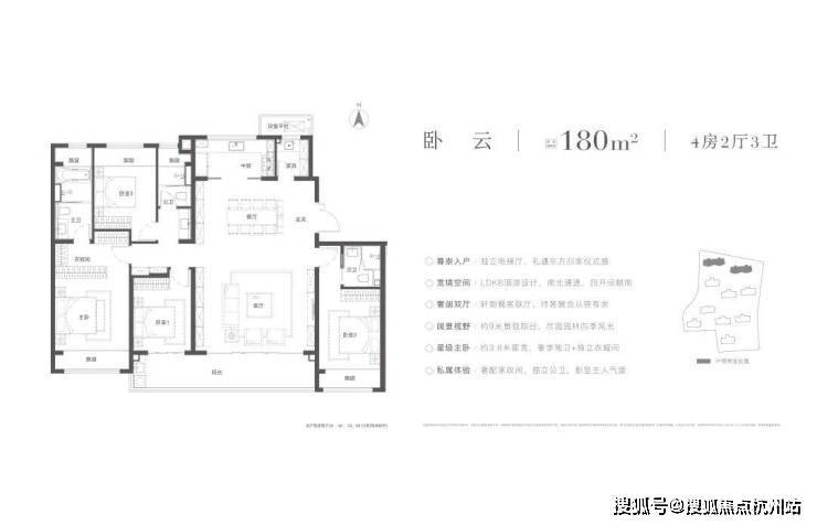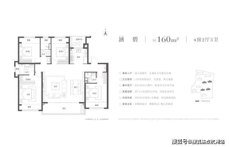 目前项目主力在售户型为建面约143㎡、160㎡、180㎡的改善型大平层,均为4室2厅设计,其中143㎡为2卫,160㎡和180㎡为3卫,户型设计合理,南北通透,采光充足。