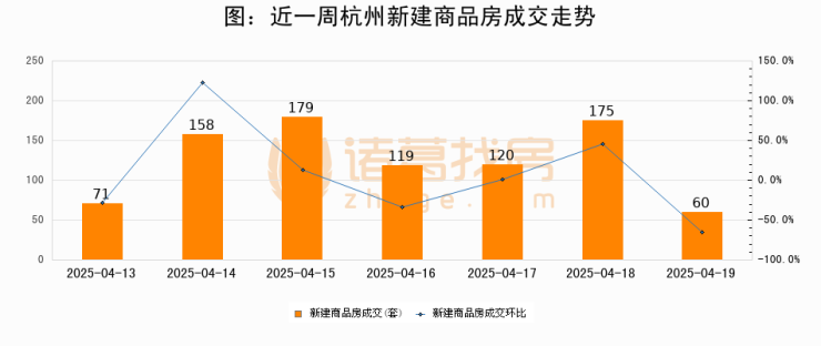 【杭州成交日报】04月19日新房成交60套、二手房232套;涨价房源2套