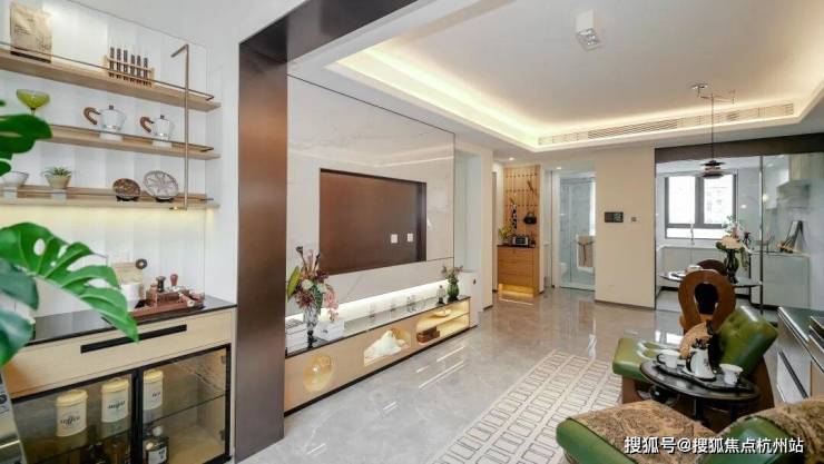 中叠面积约127㎡,为大平层设计,区域范围内无竞品。一梯一户,私密性很好。独立玄关形成专属场域,作为户内户外的过渡;侧边玄关柜强大的收纳空间,让一家人的进出井井有条。此外正对入户门的位置,也预留了装饰柜的空间,彰显主人审美与品味。
