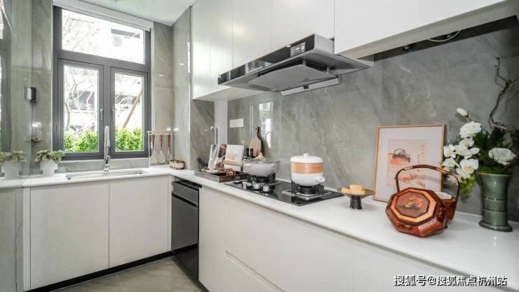 约3.2米的层高,加上约4.05米的大面宽,带来了特别好的采光效果;厨房和客厅北侧都有开窗,通风的效果也是极好的。