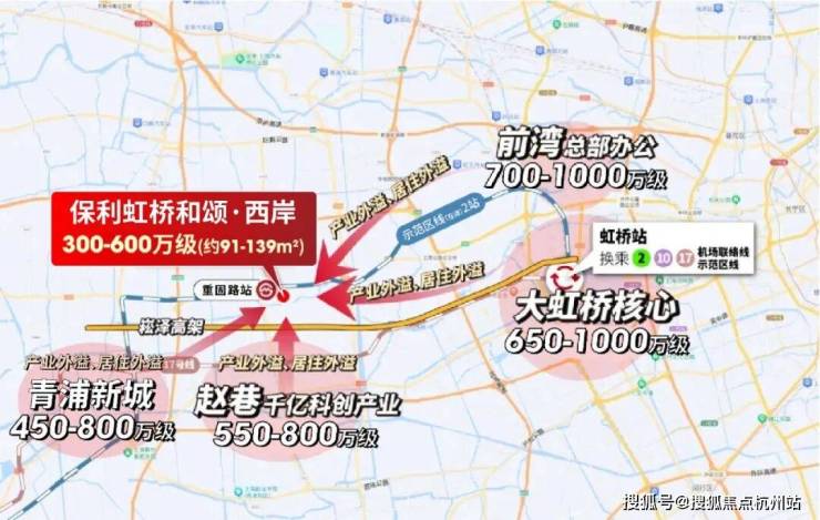 2站外的前湾已700万级,徐泾650万级,与项目同距离的赵巷也已550万级,那保利虹桥和颂凭借300万级,叠加示范区线(在建)势能,无疑将成为大虹桥乃至全上海更为期待的价格洼地。
