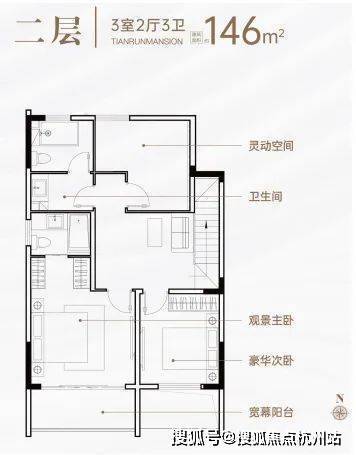 7:7米横厅,3卫设计,三代同堂互不影响;