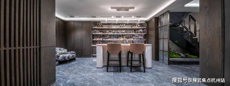 光是这个“追光”坡道就十分带感,以颇具艺术空间感的坡道尺度,香槟金色吊顶,配合天然玻利维亚蓝奢石墙面,追光式的灯带设计,一路好似“星光大道”,高端氛围妥妥拿捏了!