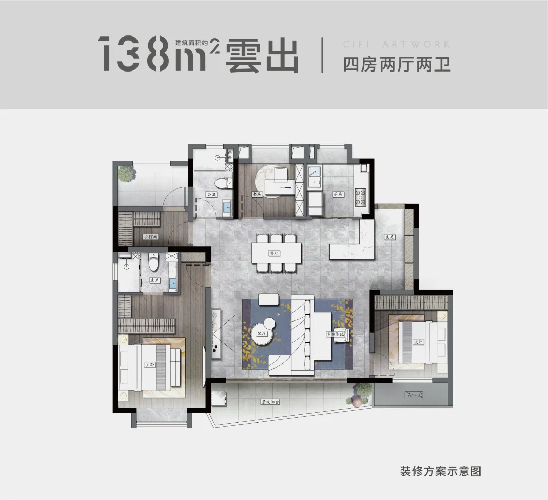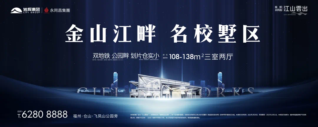 1.本项目推广名为“江山雲出”,核准地名为“旭辉云出公馆”。本广告为要约邀请,买卖双方的权利义务以双方签署的《商品房买卖合同》及附件等书面协议为准。本资料刊印时间:2021年4月6日;有效期至:2021年12月31日。本项目开发商为:福州和极昌房地产开发有限公司,预售许可证号:(2020)榕房许字第0175号。本公司保留对本宣传修改的权利,敬请留意较新资料。本户装修方案示意图为旭辉云出公馆项目(宣传推广名为:旭辉永同昌·江山雲出)【Y6幢103室】【建筑面积约108㎡户型】【Y6幢106室】【建筑面积约138㎡户型】的装修及家具布置示意图,装修方案由装修公司设计和提供,图中户型结构、格局、功能区域等进行了适当优化和提升,仅供购房者参考。装修方案示意图内所标户内尺寸、面积仅供参考,该装修方案示意图的尺寸、建筑面积以房屋交付时的测绘数据为准;相同户型的日照采光、视域范围、局部结构、套内面积等因所在楼栋、楼层、单元等位置差别可能而存在差异。装修方案示意图中的各类软装装饰、家具、寝具、衣柜、电器等设备物品仅为示意,不属于交付内容和交付标准。首期付23万分期付款说明:分期付款的客户签署认购书10天内付楼款5%以上并签署《商品房买卖合同》,后期按照合同规定支付剩余款项,后分期付款不同于商业贷款,对应房源为G2-102,详询各售楼部。2.本页中对项目周边环境、交通、教育及其它配套设施的介绍,旨在提供相关信息,不意味着本公司对此作出了承诺。文章中区位图仅展示项目与周边环境的位置关系,所示地理位置仅供参考,不反映实际情况。各部分之间的距离,受模型大小、材质、表现方式限制,各部分的比例不完全一致,与实际地图存在一定差异。区位图中项目周围自然环境、交通及其他公共设施、市政服务机构、教育及医疗等公共服务机构的介绍,旨在提供相关信息,且并不完整表达周边相关所有信息,实际情况以现状、政府规划及招生政策为准,购房前敬请前往实地观看,实际了解距离关系及周边建筑物现况,或者就项目周边规划咨询相关政府主管部门。区位图中所展示的项目周边状况,不作为出卖人的承诺。