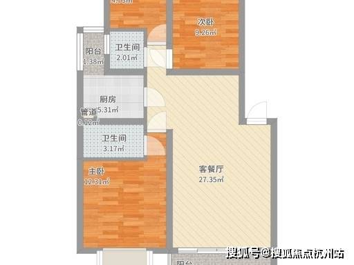 2. 建面约 100㎡小高层三房两厅两卫(明星主力,5 米横厅)