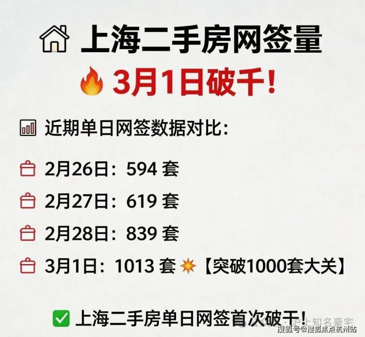 根据房地网信息,2026年春节过后首个休息日,3月1号上海二手房单日网签量