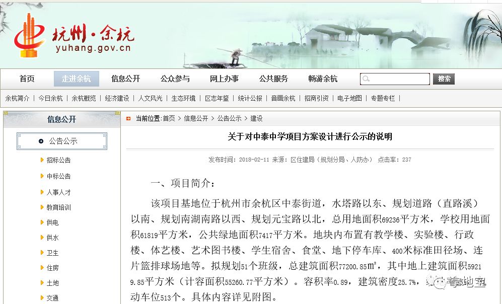 【规划】余杭中泰中学方案公示,占地93亩,规划51班