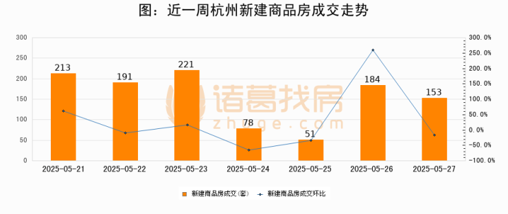 【杭州成交日报】05月27日新房成交153套、二手房237套;涨价房源26套