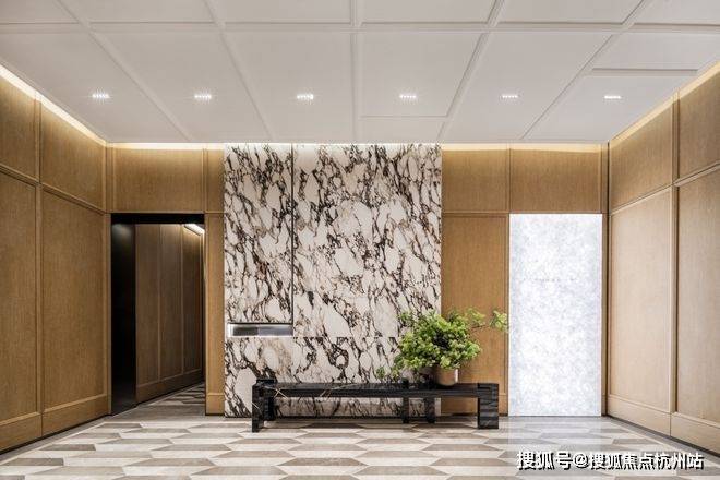 用料上,部分以冰火板+岩板打造的车行道廊柱、仿透光云石定制车牌号、部分主干道全铝板吊顶,无不显示出业主的归家气场。