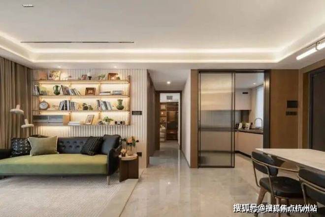 前排一线湖景楼幢,约12.4米超大面宽、四开间朝南。实体样板房的餐厅在做了双排餐边柜后,座位依然阔绰。厨房也非常自信的放入了双开门大冰箱,对喜欢屯各种生鲜食品、饮料的年轻人来说真是心头好。