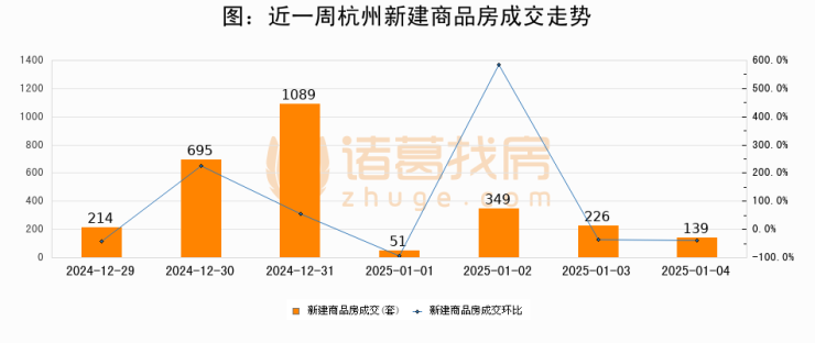 【杭州成交日报】01月04日新房成交139套、二手房187套;涨价房源26套