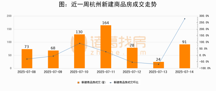 【杭州成交日报】07月14日新房成交91套、二手房244套;涨价房源19套