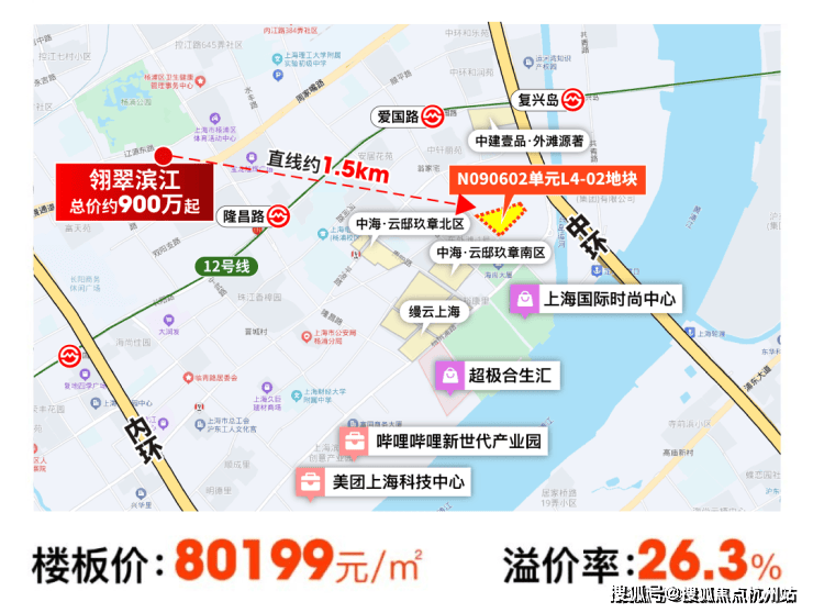就在上周五,上海四批次土拍开拍,杨浦又出让了一块地王!杨浦区N090602单元L4-02地块,5家经过了72轮的报价,最终以溢价率约26.30%、楼面价约80199.3元/㎡的成绩被拍下,预计这个地块应该卖约13万+的价格。而翎翠滨江二期均价109341元/㎡,总价仅900万起,在这样的市场下,即将认购的翎翠滨江真的赢麻了。