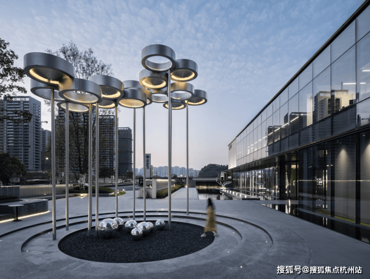 登高却不望远,溯坡而上来到了一个环形小剧场。由高高低低的细杆撑起的大大小小的银盘,构成了一组轻盈的艺术装置——“云亭”,映射着天空的光彩,似远方飘来。⭐⭐大华峰汇华城售楼处电话:400-8385-958⭐⭐