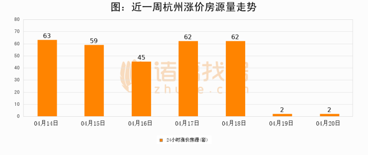 根据诸葛找房数据显示,杭州24小时涨价房源量为2套,较04月19日持平。