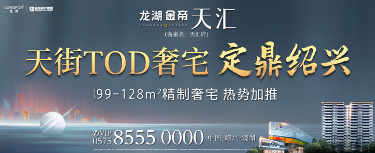 本项目推广名为“龙湖金帝·天汇”,核准地名为“天汇府”。本宣传资料为要约邀请,不构成要约内容,具体信息以书面签订的合同约定及政府最终审批为准。宣传材料中天街位置仅为参考位置示意,所示位置、距离、地图格局等均与实际有所偏差,不作为严格意义上的地图,具体以实际情况为准;外立面仅作效果示意,具体以实际为准。天街荣誉及数据来源:《东莞日报》、《搜狐号·上海虹桥》、《乐居买房》、《2020城市商业魅力排行榜》、《赢商网》、《联商网》、《搜狐焦点》、《搜狐焦点杭州》。本项目开发商为绍兴龙悦置业有限公司,本公司保留对此宣传资料修改的权利。时间:2021年06月。绍市售许字(2021)第ZJ00151号