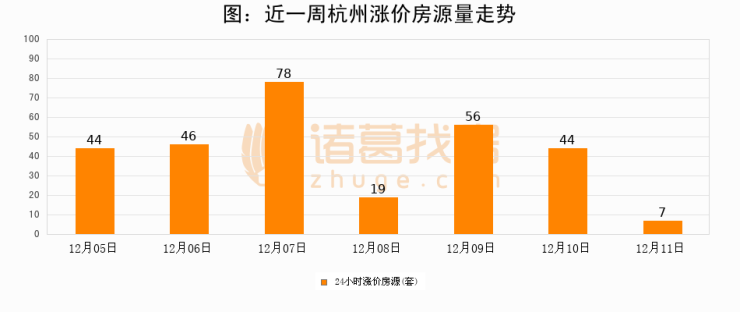 根据诸葛找房数据显示,杭州24小时涨价房源量为7套,较12月10日减少37套,环比下降84.1%。与此同时,涨价房源占比小幅回落,对于购房者来说是一个入市窗口期,购房者可抓住时机入市。