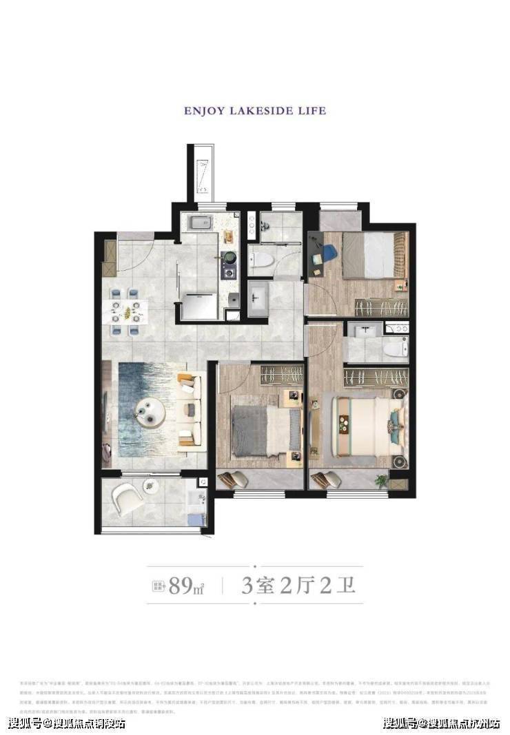 建筑面积约89㎡三房,总价448万起