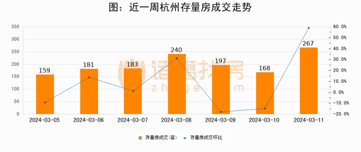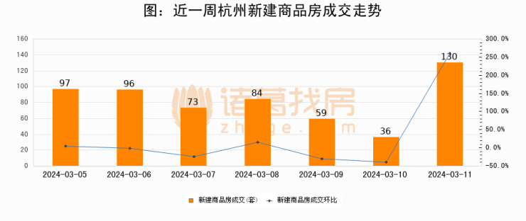 【杭州成交日报】03月11日新房成交130套、二手房267套;涨价房源96套