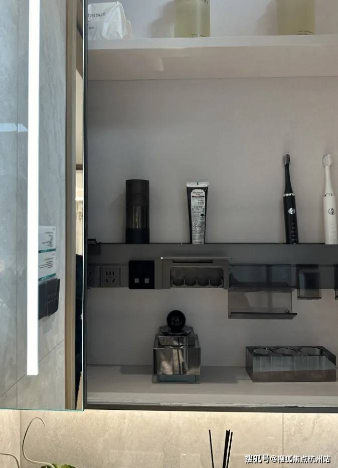 主卧卫生间镜柜,甚至交付有牙刷消毒系统: