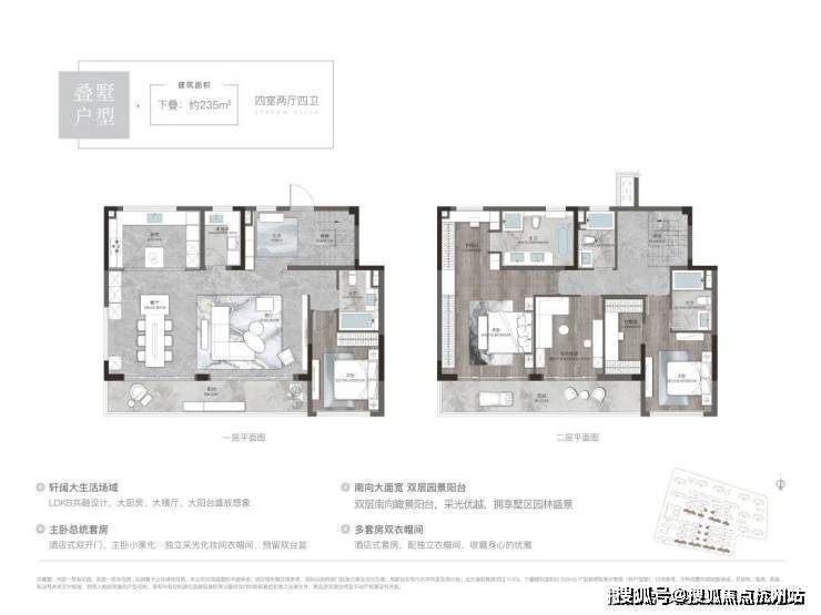下叠235平户型:四室两厅四卫,总价500万-550万