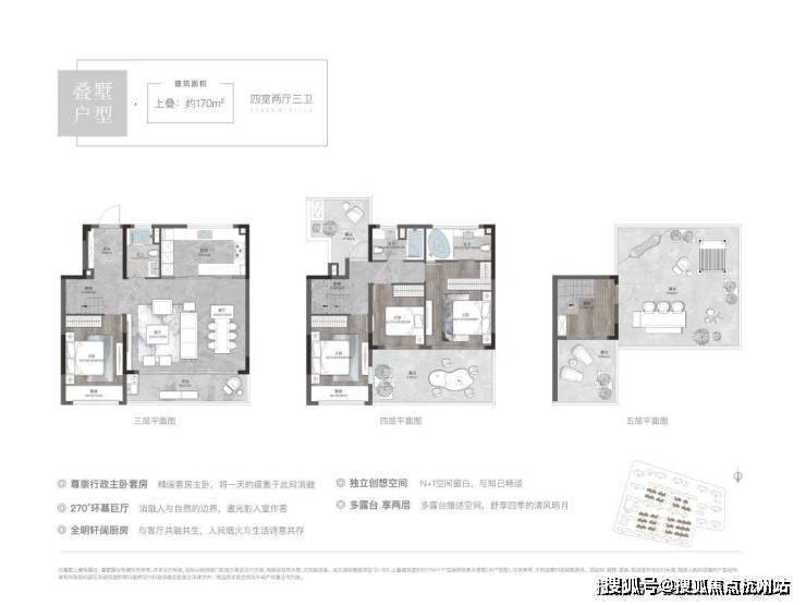 上叠170平户型:四室两厅两卫,总价330-350万